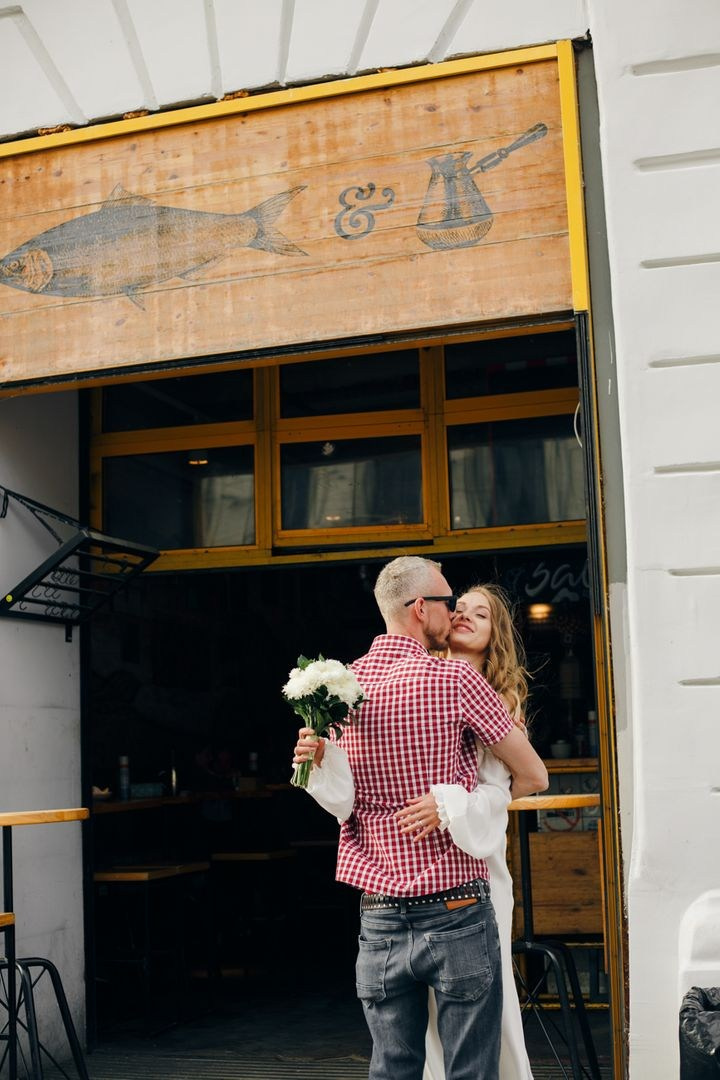 Ксюша пришла ко мне с запросом поснимать только прогулку, даже без загса: «там загс на Рокоссовского, обычный, зашел-вышел. Что еще с этим новым порядком непонятно, пцр, прививки». Мы весело прошлись с ребятами и их гостями по городу. Финишной точкой было кафе «Селедка», где они и познакомились.