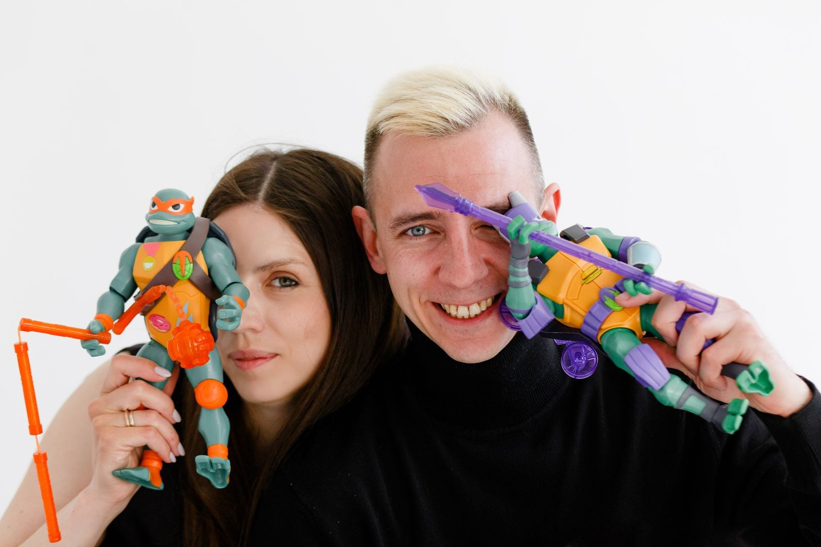 Когда-то давно я снимала Оле и Диме лавстори. С тех пор их семья выросла в два раза — и Оля пришла с запросом устроить черно-белую фотосессию.Мы подобрали студию, обсудили, в какой одежде придут все герои. И они ещё взяли с собой любимых черепашек и маски под стать игрушкам — эти кадры ближе к концу)