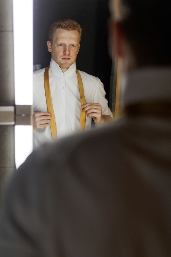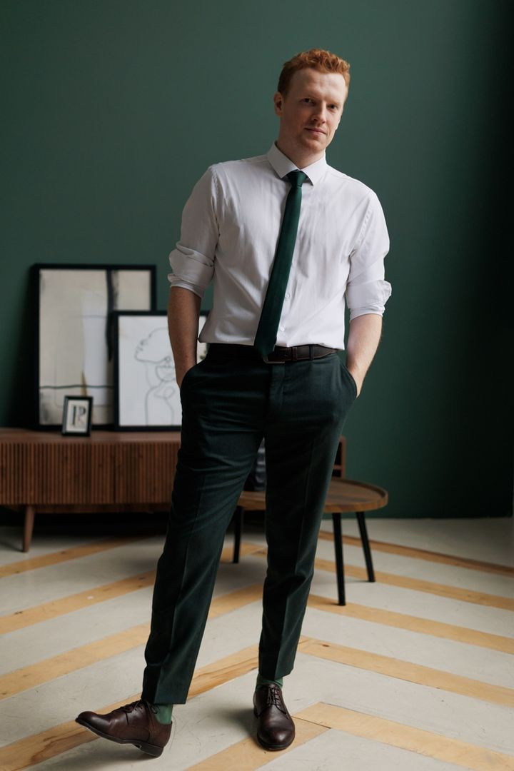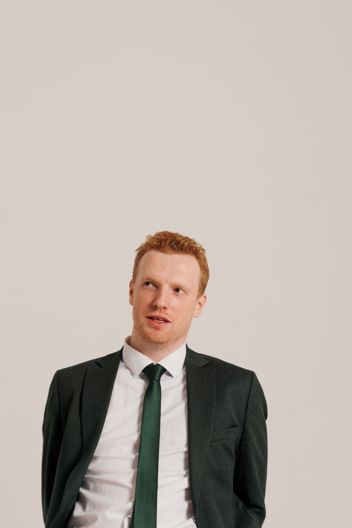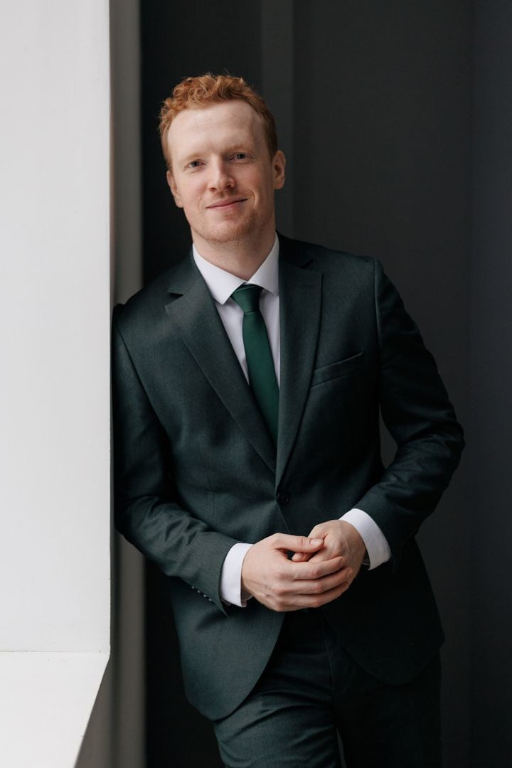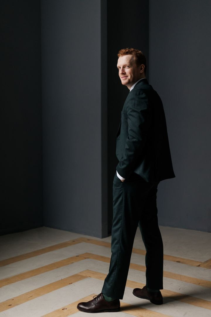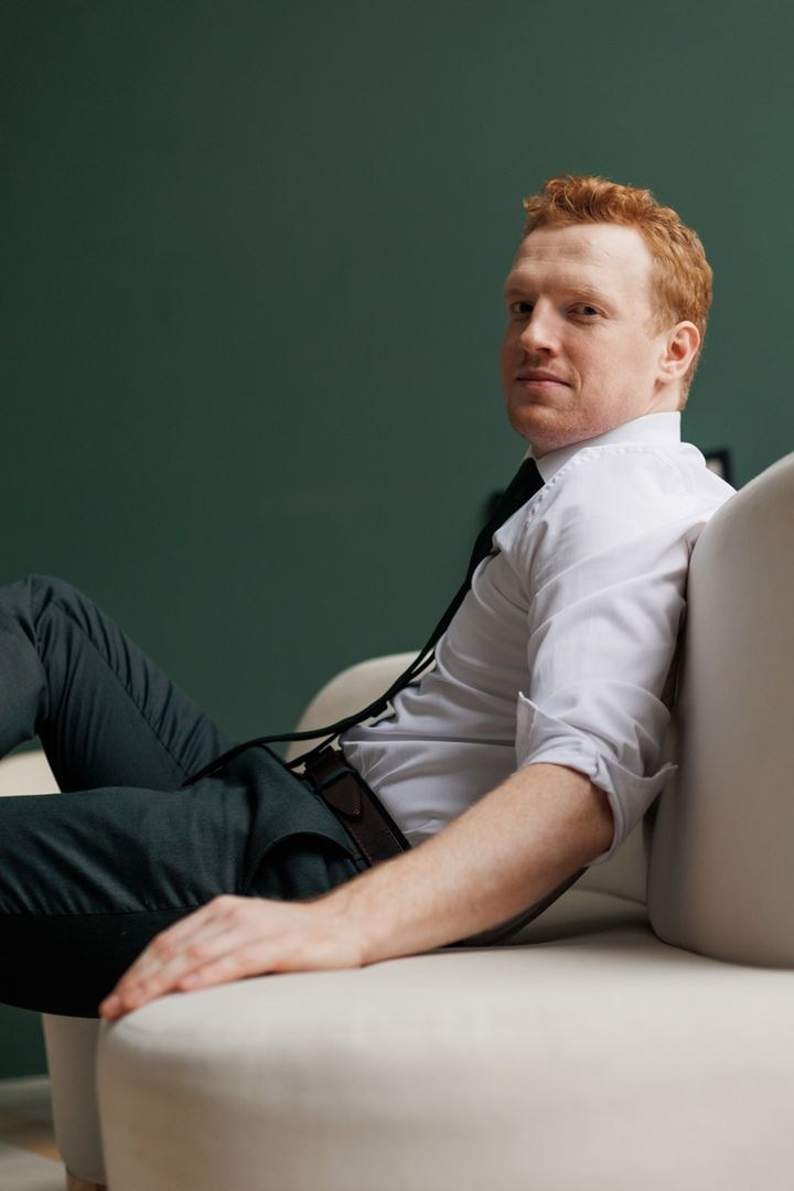 Мы пообщались, выяснили, что Илья хочет фото в костюме в студии с однотонным фоном. Кадры нужны для аккаунта на Авито: «Крупный портрет с улыбкой) Вообще я очень веселый и открытый человек, хочется это транслировать, но в меру». Илья прислал мне варианты галстуков и какой будет костюм — мы выбрали подходящий наряд, зал Rilz в фотостудии Корица и референсы для фотосессии.