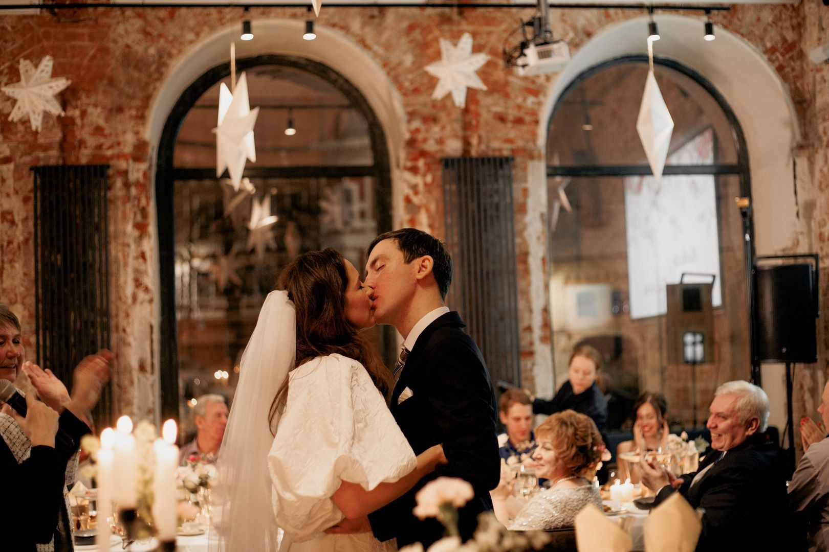 Банкет прошёл в винном баре Vins — потрясающая локация для фотографа. Разные точки съёмки, необычный интерьер, ламповость и возможность снять через окна, выйдя на улицу. И конечно же — эмоции, весёлые гости и влюбленные молодожены