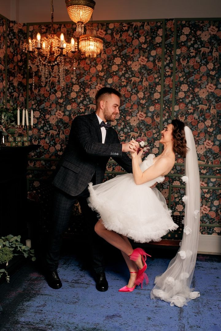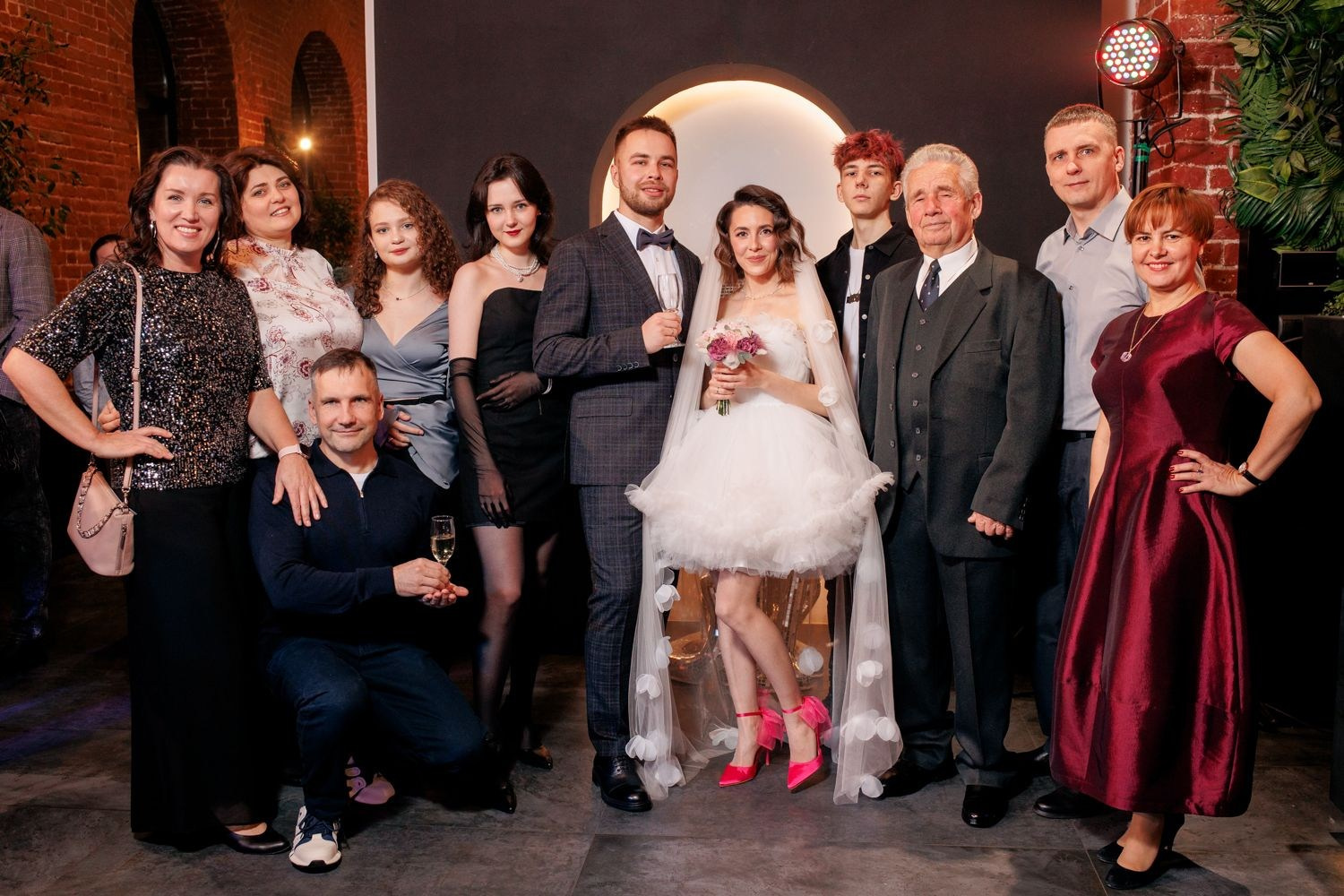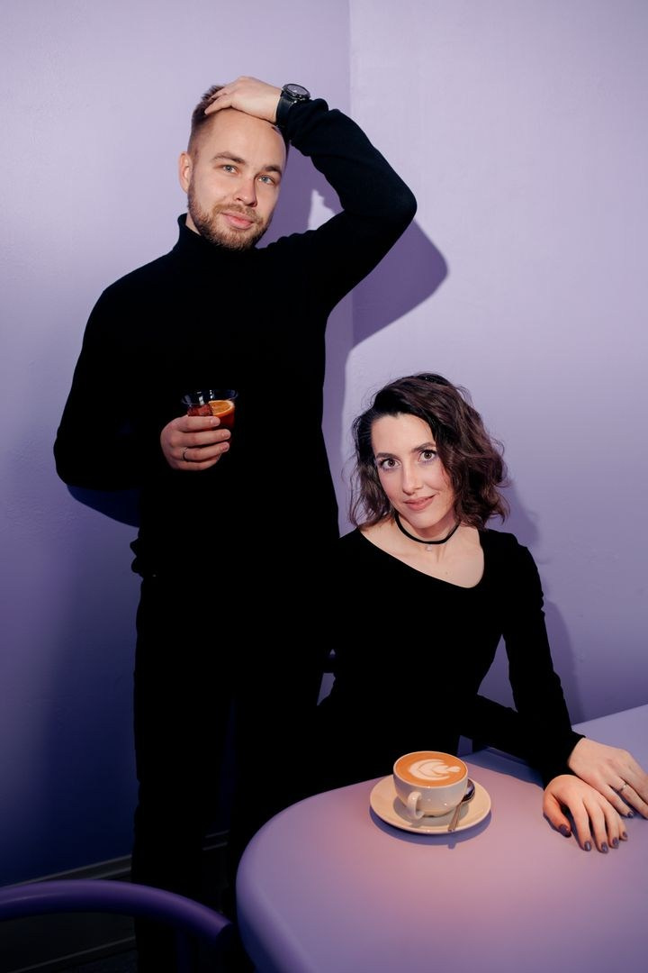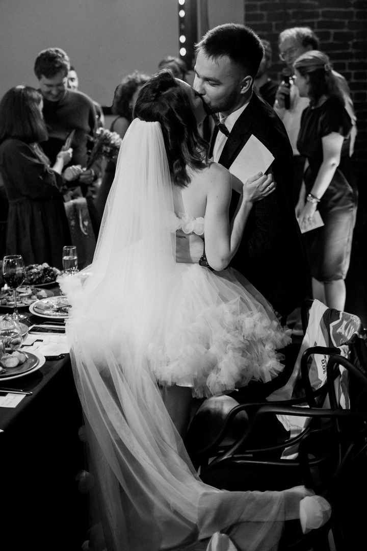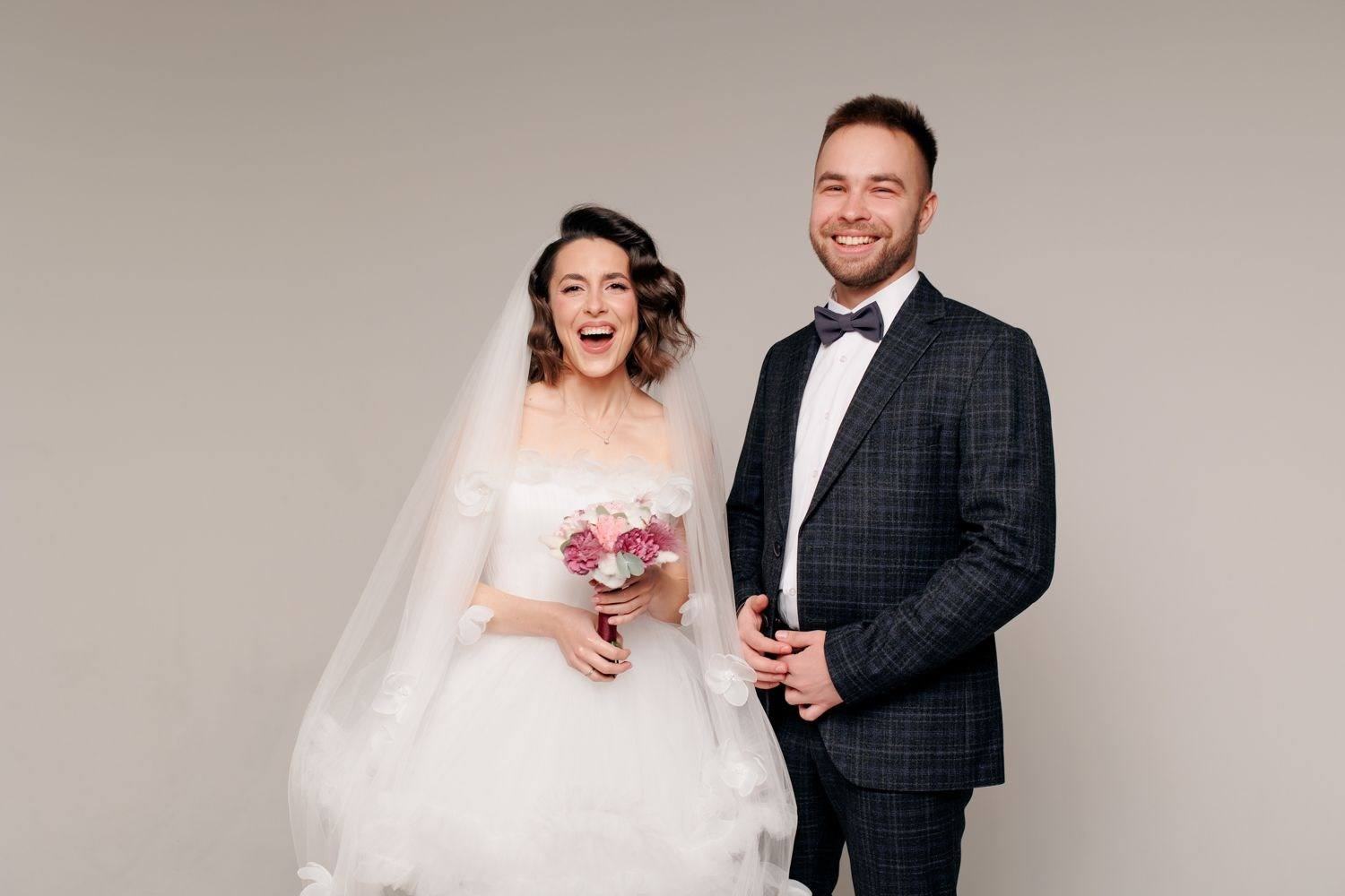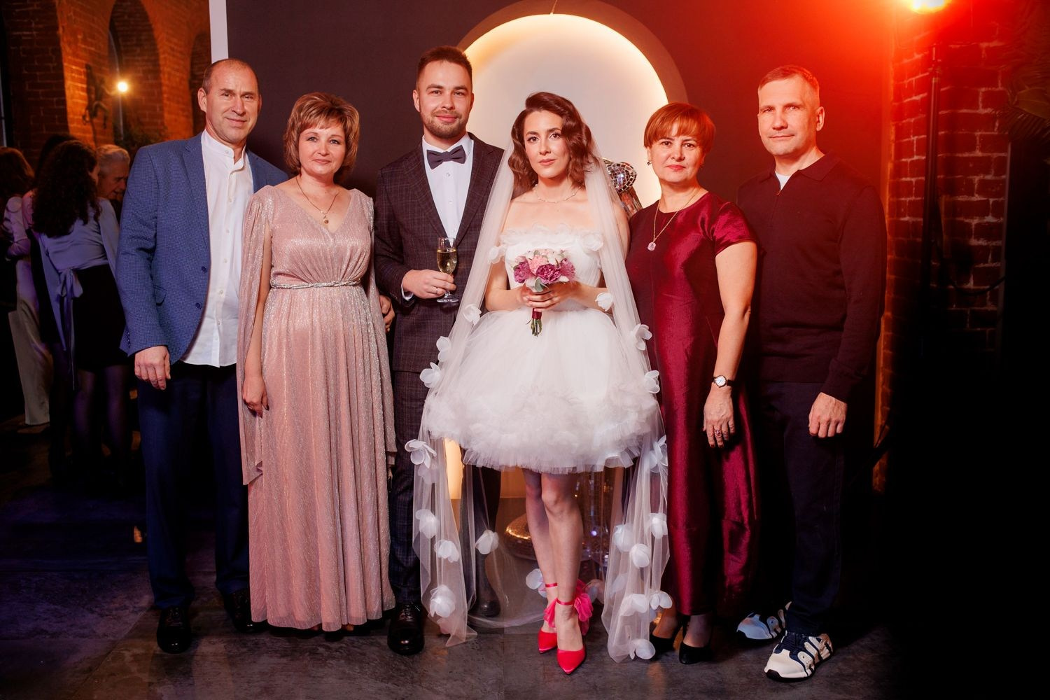 Мы встречались 2 раза, потому что ребята разделили день банкета и день регистрации в ЗАГСе. Поэтому сначала были темные луки (с изменяющимися колготками) и фотосессия в кафе Министерство завтраков. А через месяц — банкет и небольшая фотосессия до в лофте Forself.